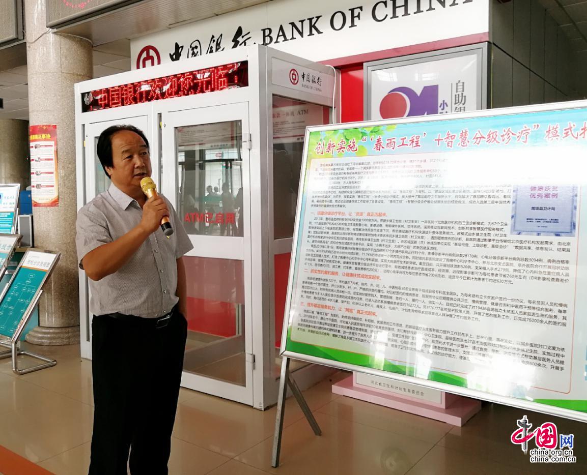 李宝志向记者介绍“春雨、雨润工程”+智慧分级诊疗模式的具体内容。中国网记者 乔娅丽 摄