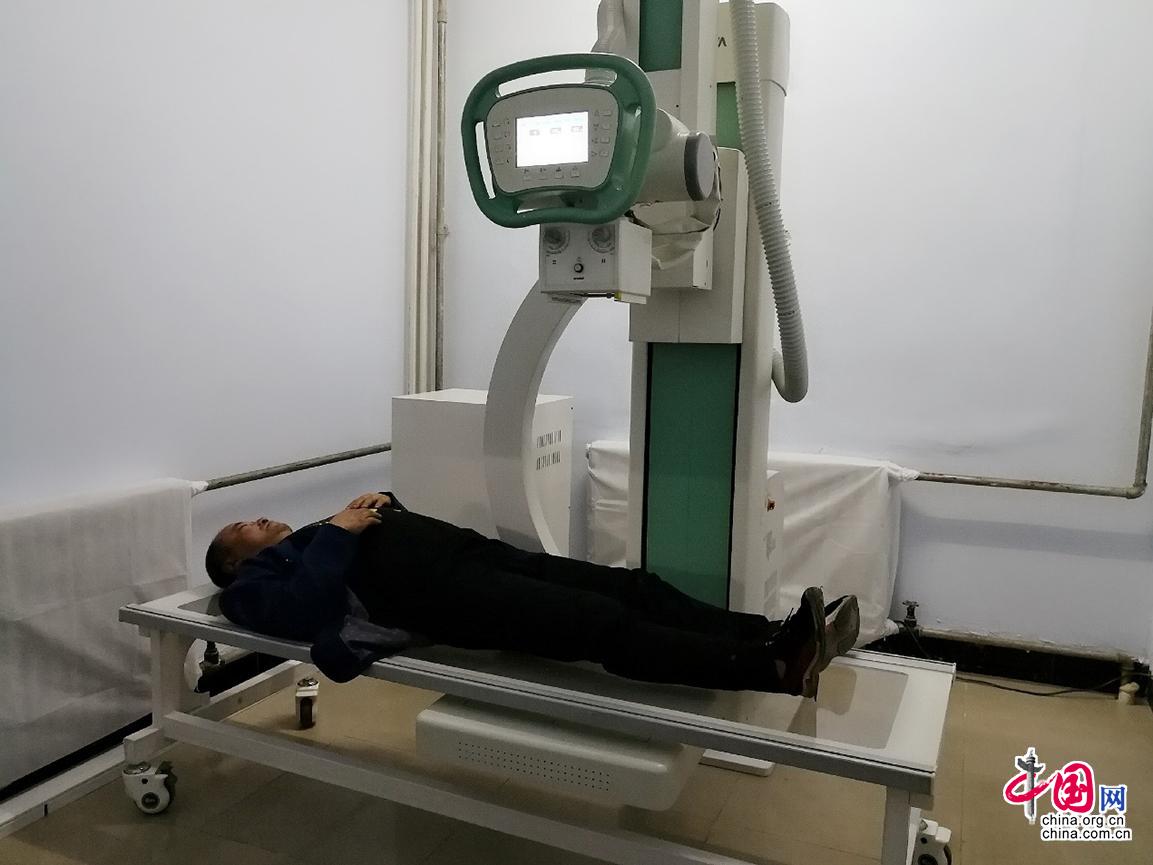 哈里哈村村民王桂民正准备做DR,他的检查结果将通过远程诊疗系统传送到县医院,享受县医院专家诊疗。中国网记者 乔娅丽 摄