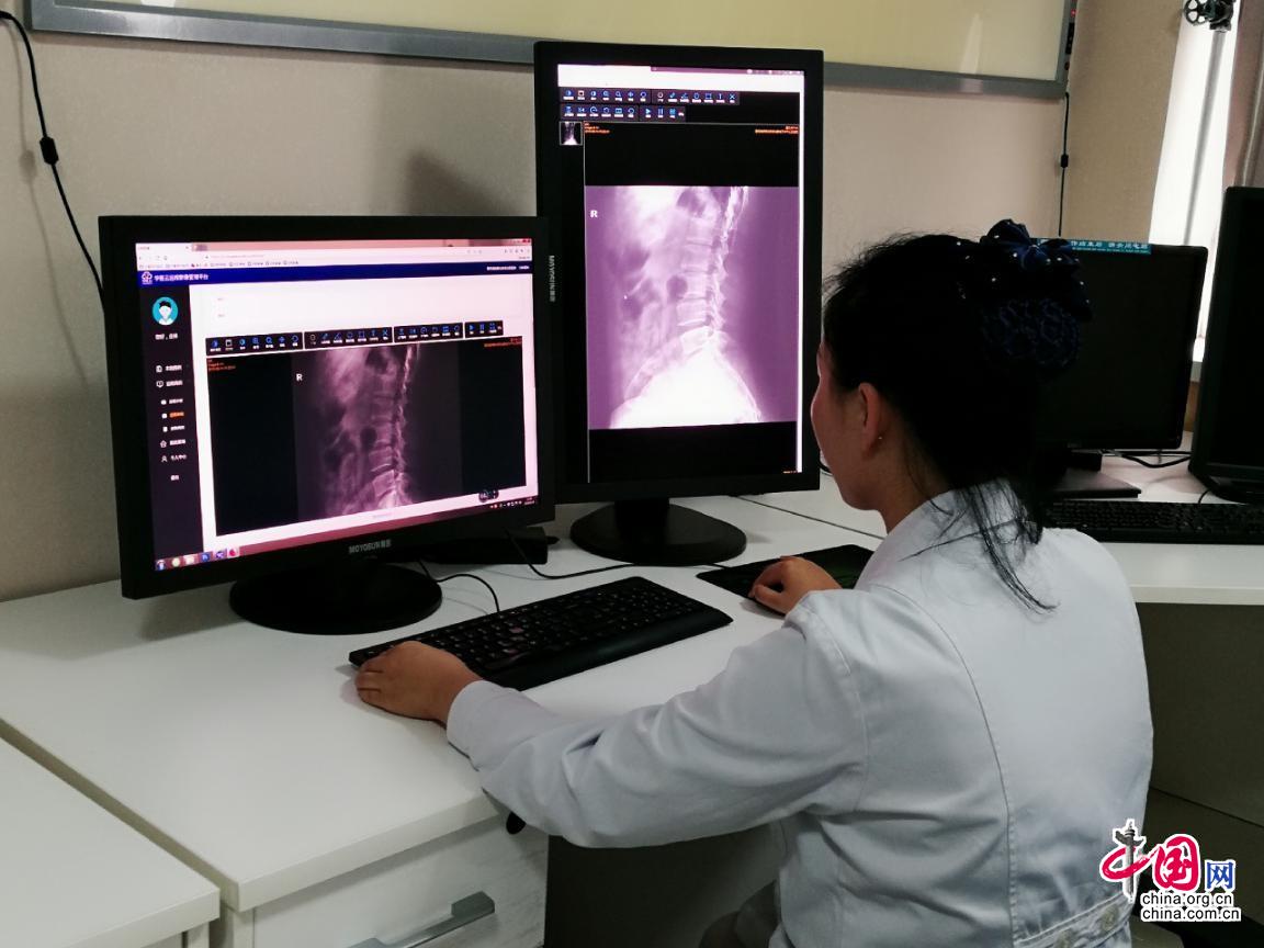 值班医生向记者展示刚刚从乡镇卫生院发来的影像资料。中国网记者 乔娅丽 摄