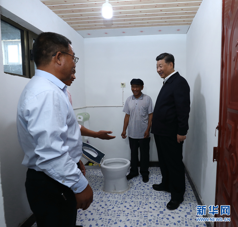 8月21日上午,正在甘肃考察的中共中央总书记、国家主席、中央军委主席习近平来到古浪县黄花滩生态移民区富民新村,看望从山区生态移民易地扶贫搬迁的乡亲们。他走进村民李应川家,小院洁净、住房敞亮、厨卫设施齐全。 新华社记者 鞠鹏 摄