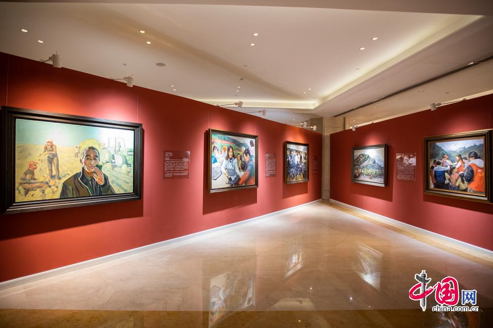 崔龙创作的布面油画《乌蒙山壮行》记录了恒大集团助力毕节脱贫攻坚的情况。中国网记者 郑亮摄