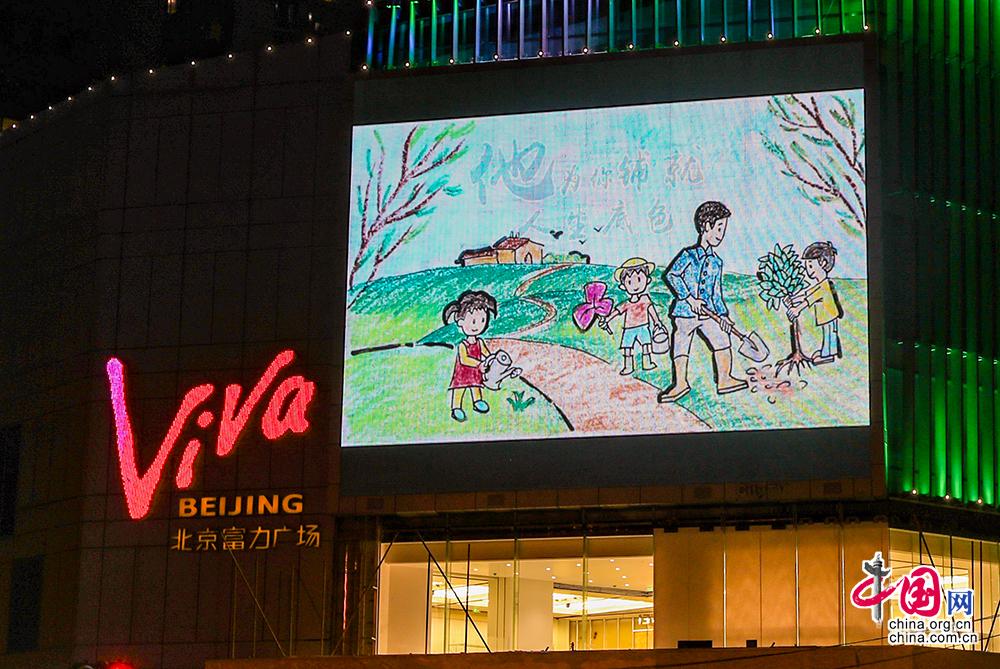 9月10日,北京富力广场大屏幕滚动播放主题为《这个教师节,你想起了谁》的教师致敬宣传片。中国网记者 郑亮摄