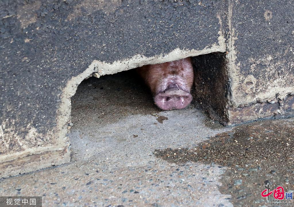 当地时间2019年9月17日,韩国仁川,当地对猪圈进行消毒。 图片作者:Yonhap News Agency/视觉中国