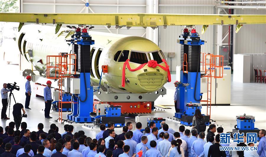 9月27日,新舟700飞机在进行机身与机翼对接。 当日,国产新舟700飞机在航空工业西飞民机公司成功完成机身与机翼精准对接,这标志着新舟700飞机结构制造关键技术取得全面突破,工装工艺得到充分验证,为后期项目顺利开展奠定了坚实基础。 新华社记者 邵瑞 摄