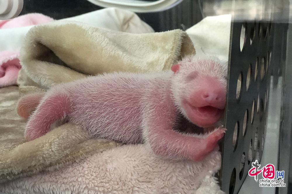 2019年10月11日下午,成都大熊猫繁育研究基地大熊猫“小丫头”顺利产下一对双胞胎,大仔初生体重176.6克;小仔初生体重131.4克,均为雄性,母子平安。成都大熊猫繁育研究基地供图