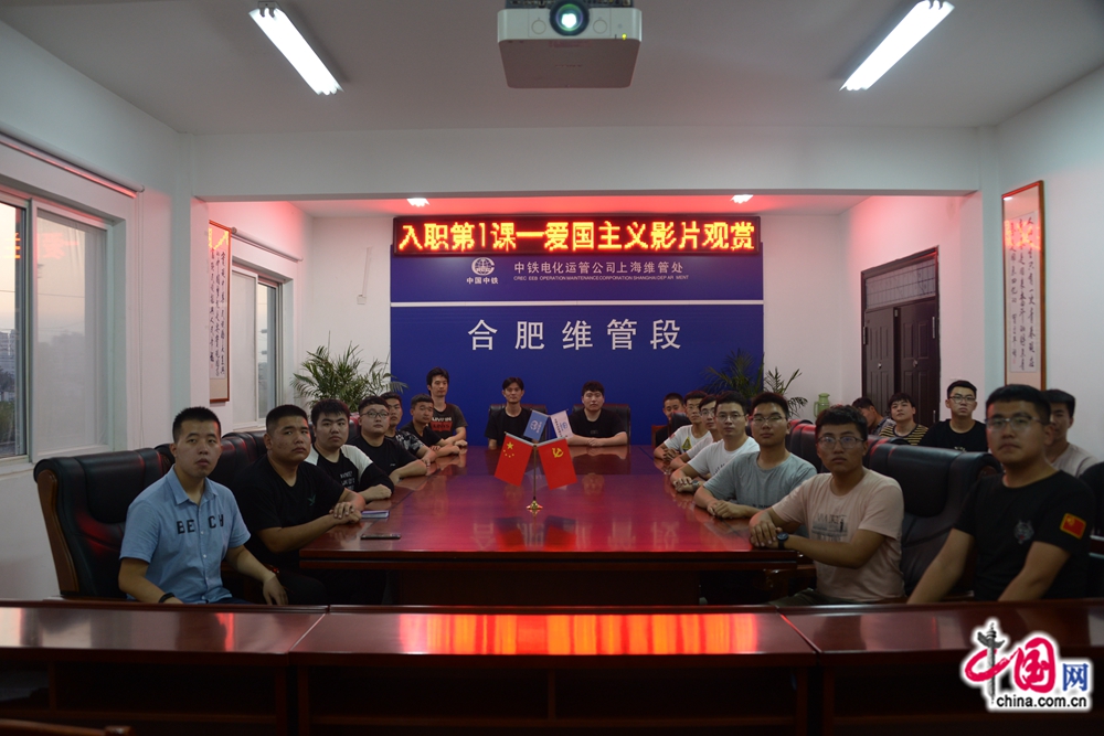 培训学习内容多,爱国教育要当先。在进入正式专业理论学习之前,开展了一次大学生主题团日活动。组织大学生观看爱国主义电影《横空出世》,通过“开班第一课”教育和引导青年学生一定要坚定理想信念,进一步提高政治站位和大局意识。今年是中华人民共和国建国70周年,在全国大庆的氛围中,合肥段全体员工爱国热情高涨。新时代下新青年理想信念教育显得尤为重要,他们将来需要维管的线路是安徽省的重要高铁干线,必须拥有坚定的理想信念,方能维护好线路安全,确保畅通。