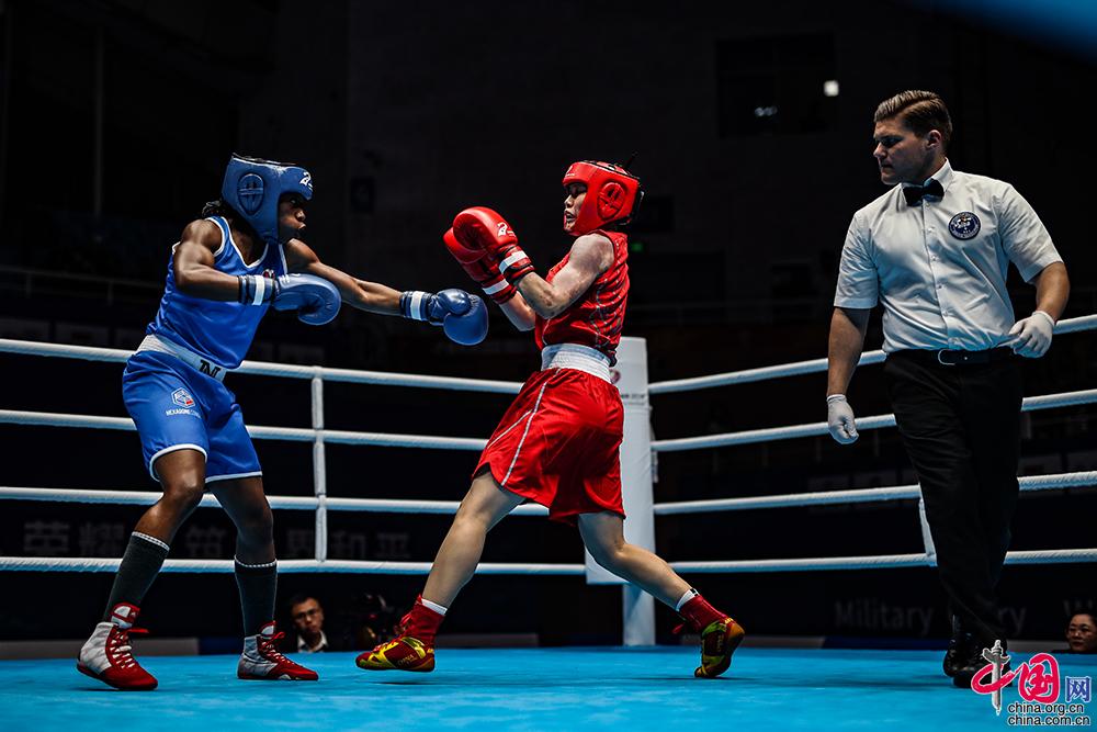10月22日,女子拳击四分之一决赛在武汉体育学院体育馆进行,中国选手刘飘飘等五名选手出战五个不同重量级比赛,凭借过硬的实力,五名女子选手在比赛中均顺利晋级。中国网记者 郑亮 摄
