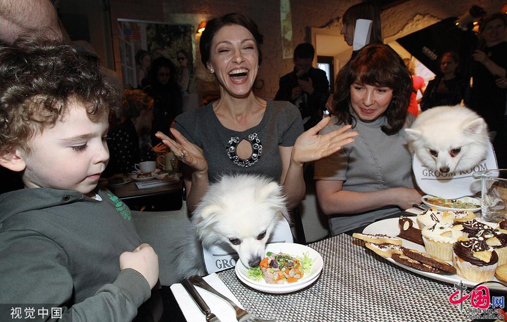 2011年4月19日,俄罗斯莫斯科,俄罗斯首家宠物咖啡店开张。视觉中国