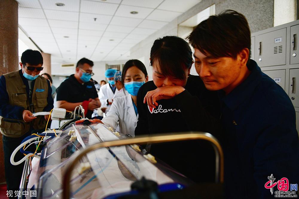 近日,安徽淮北一对双胞胎在25周时意外早产,出生时仅有两斤左右,还有新生儿呼吸窘迫综合征、新生儿窒息、肠道感染等并发症,需紧急转至北京接受治疗。4日,双胞胎和父母从淮北出发,乘坐救护车、医疗专机再转救护车,用4小时左右抵达北京八一儿童医院。有航空公司为他们提供了免费专机,到北京后有交警开路,转院路途顺利。付丁/视觉中国