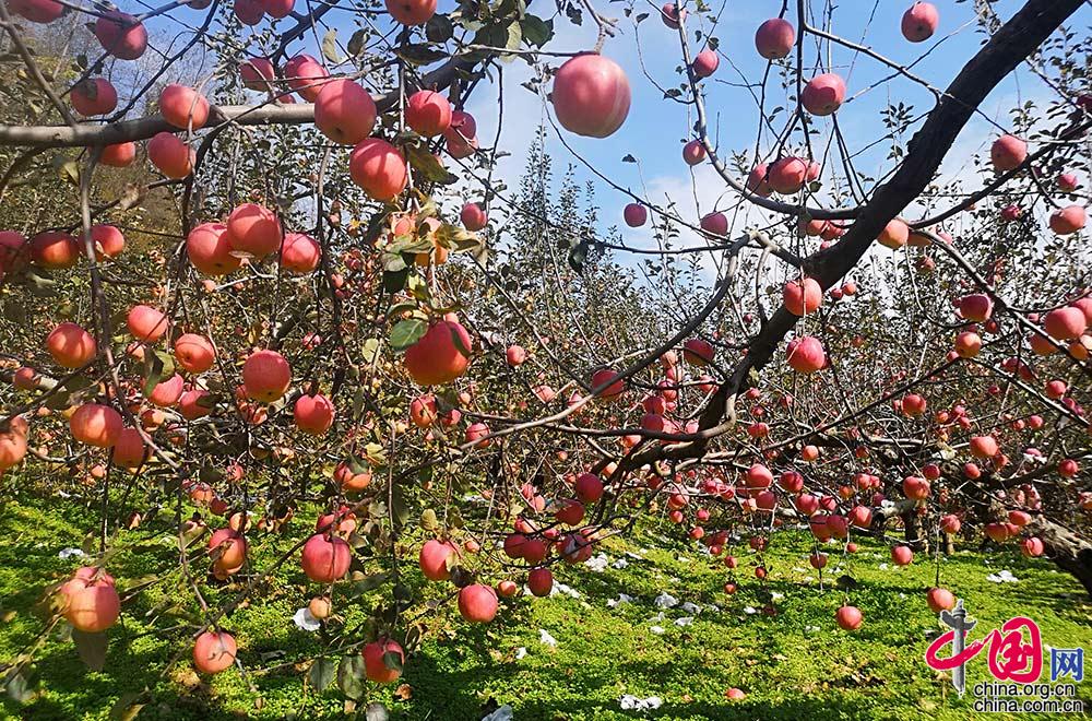 在灵宝寺河山上,又红又大的苹果挂满枝头