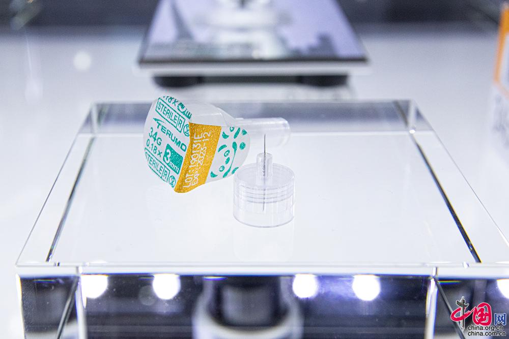 从生产制造到生命科学,本届进博会中展示的全球尖端新技术包罗万象,为人类未来绘制出美好“蓝图”。图为医疗器械公司泰尔茂带来全球最细的胰岛素注射针头“纳诺斯Jr.”(NANOPASS Jr.),其针端直径仅0.18毫米,可大大减缓糖尿病患者的注射疼痛和不适。 中国网记者 伦晓璇 摄