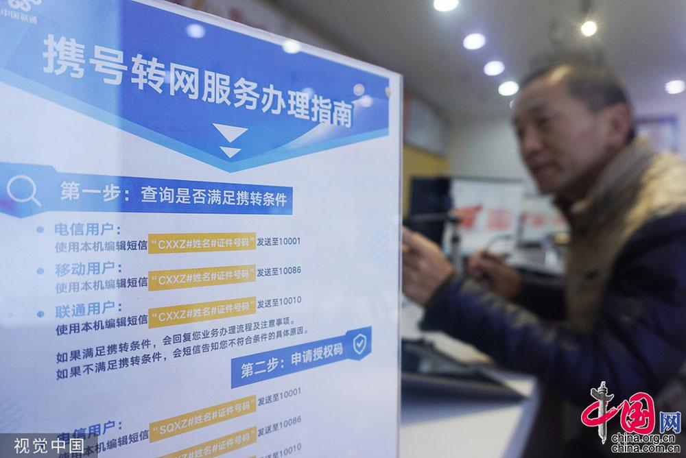 2019年11月27日,顾客在联通位于杭州一家营业厅里办理携号转网。图片作者:龙巍/视觉中国