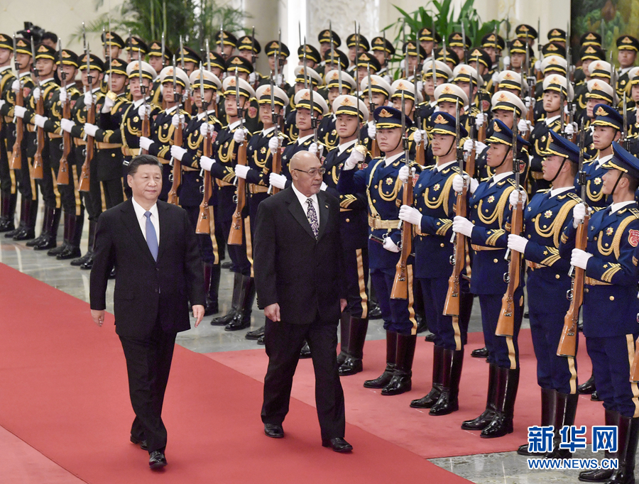11月27日,国家主席习近平在北京人民大会堂同苏里南总统鲍特瑟会谈。这是会谈前,习近平在人民大会堂北大厅为鲍特瑟举行欢迎仪式。 新华社记者 庞兴雷 摄
