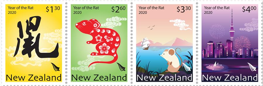 这是新西兰邮政发行的2020中国鼠年生肖邮票小全张。 新西兰邮政4日发行2020中国鼠年生肖邮票一套4枚和包含这4枚邮票的小全张,庆祝即将到来的中国农历鼠年。 新华社发