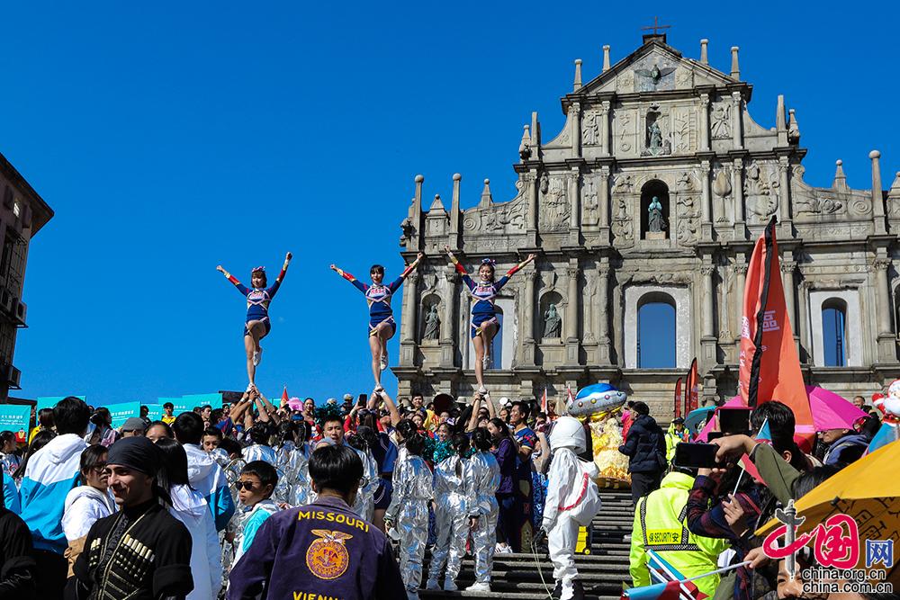 中国网讯(记者 董宁)12月8日下午,由澳门特区政府文化局主办的“2019澳门国际幻彩大巡游”在澳门大三巴牌坊前启动,来自“一带一路”沿线国家及地区80队巡游表演队伍联袂参演,共庆澳门回归祖国20周年。
