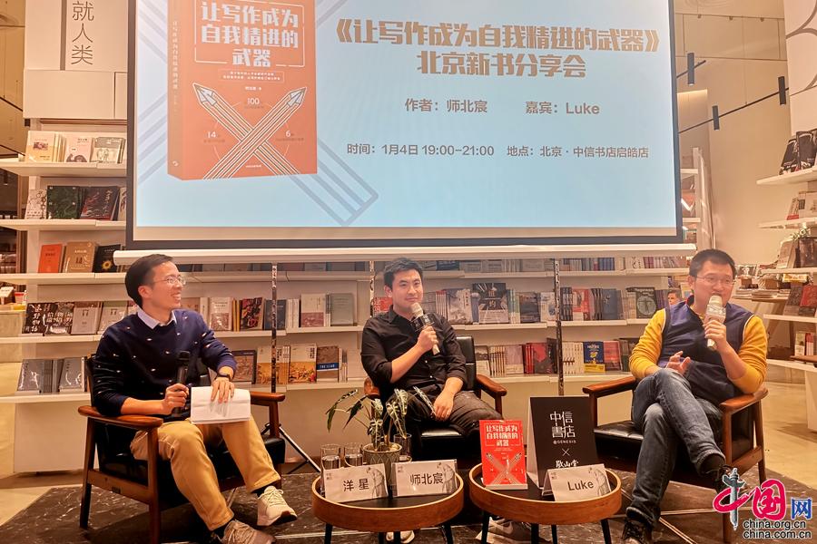 2020年1月4日,《让写作成为自我精进的武器》新书分享会在中信书店启皓店举行,此次活动由中信出版社24小时工作室、中信书店联合举办。现场读者十分热情,三节课创始人Luke(后显慧)和开跑运动创始人洋星作为特邀嘉宾,和作者师北宸一起分享了关于精进写作与职业发展的问题。