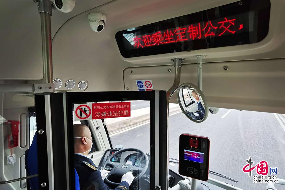 客一分公司定制公交的驾驶员每日上岗前均要进行员工卡登记、测量体温、班前签到、酒测、宣誓、车辆例检等环节,全程佩戴口罩驾驶,保障自身和乘车人的健康安全。运营中,驾驶员会引导乘车人保持一定的距离,陌生人之间避免密切接触。公交集团供图