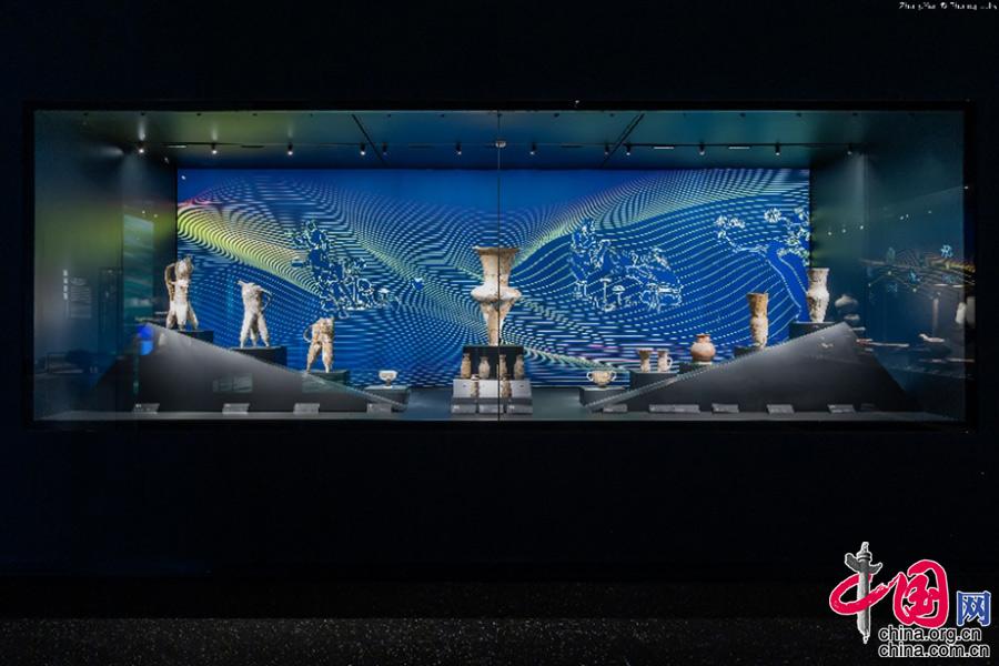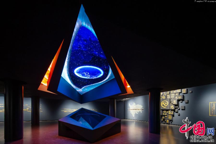 改造升级后的三星堆博物馆综合馆充分运用多媒体技术, 更全面、更深入地表达三星堆文化内涵。序厅多媒体“三星堆之眼”,勾勒三星堆发现发掘关键节点,再现历史场景和事件,揭示“古城、古国、古蜀遗址”的三星堆文化内核。