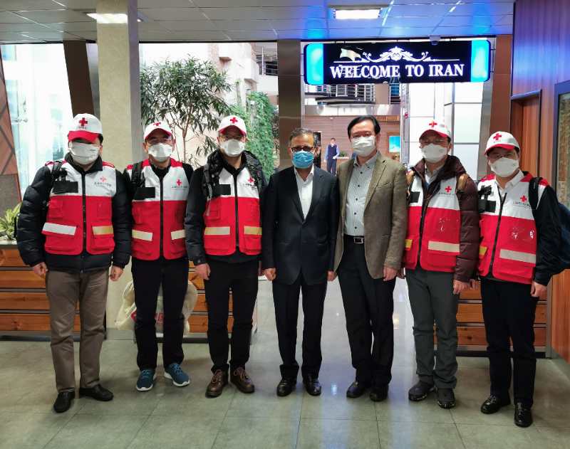 2020年2月29日凌晨,中国红十字会志愿专家团队一行5人抵达伊朗首都德黑兰,并携带了部分中方援助的医疗物资。驻伊朗大使常华和伊卫生部官员前往机场迎接。图片来源:中华人民共和国驻伊朗伊斯兰共和国大使馆网站