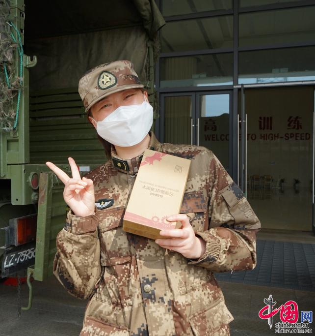 迷彩妈妈吴娅利在医疗队负责保障物资,她说:“这已经是陆军为前方送来的第三批物资了,我会告诉女儿,不要担心妈妈在前线受苦受累,有百万陆军叔叔阿姨支持妈妈消灭病毒呢。”