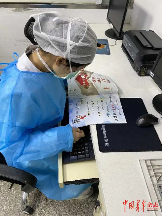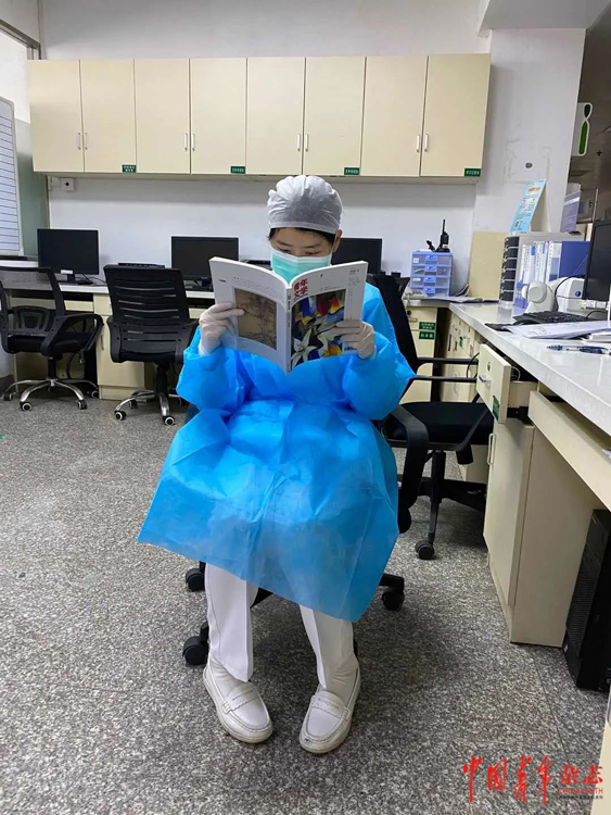 一线医护人员在阅读《中国青年》