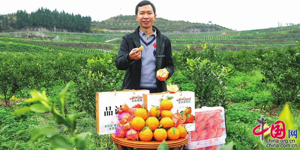 “你看我手头的这个春见柑橘,果面光滑、果色鲜艳、果汁丰富、果肉细嫩,拈指一闻,香气入骨;轻啖一口,唇舌生津、甘甜美味……这便是我们园区种植的优质水果,欢迎大家到园子里来品尝。”在西充县东太乡天马柑橘产业园,乡长赵蔚手捧柑橘,倾情代言。