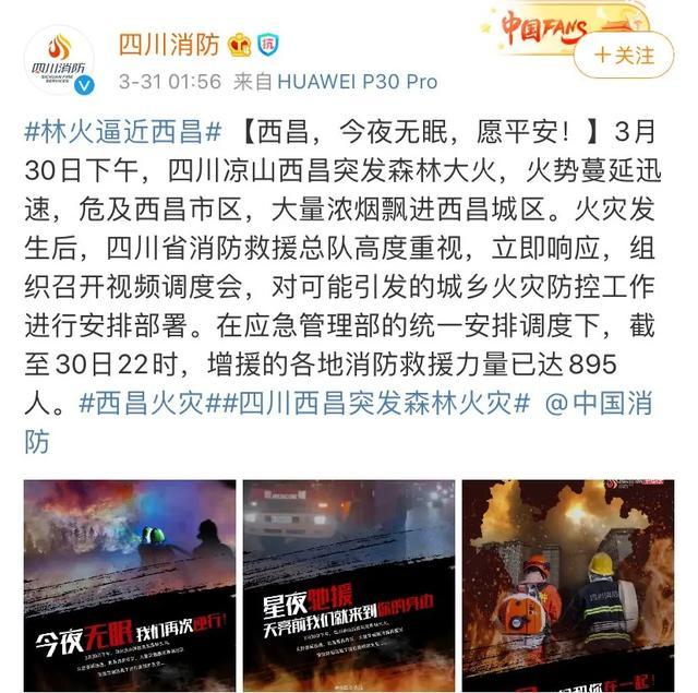 @四川消防 发布消息:西昌,今夜无眠,愿平安!