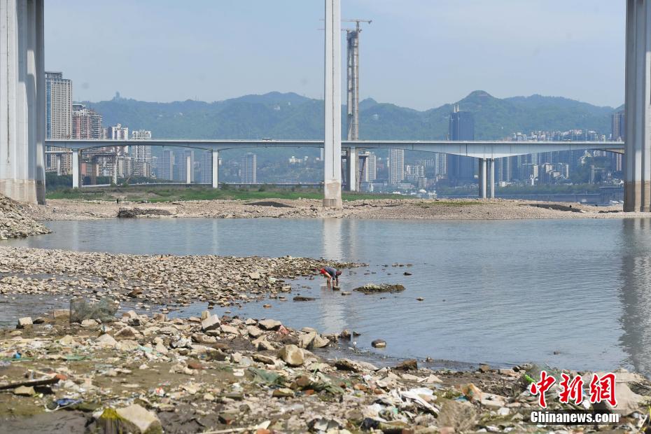 4月9日,长江重庆段水位持续走低,大面积的河床裸露在外,跨江大桥桥墩底部也清晰可见,这里也成了周边民众的娱乐休闲地。 陈超 摄