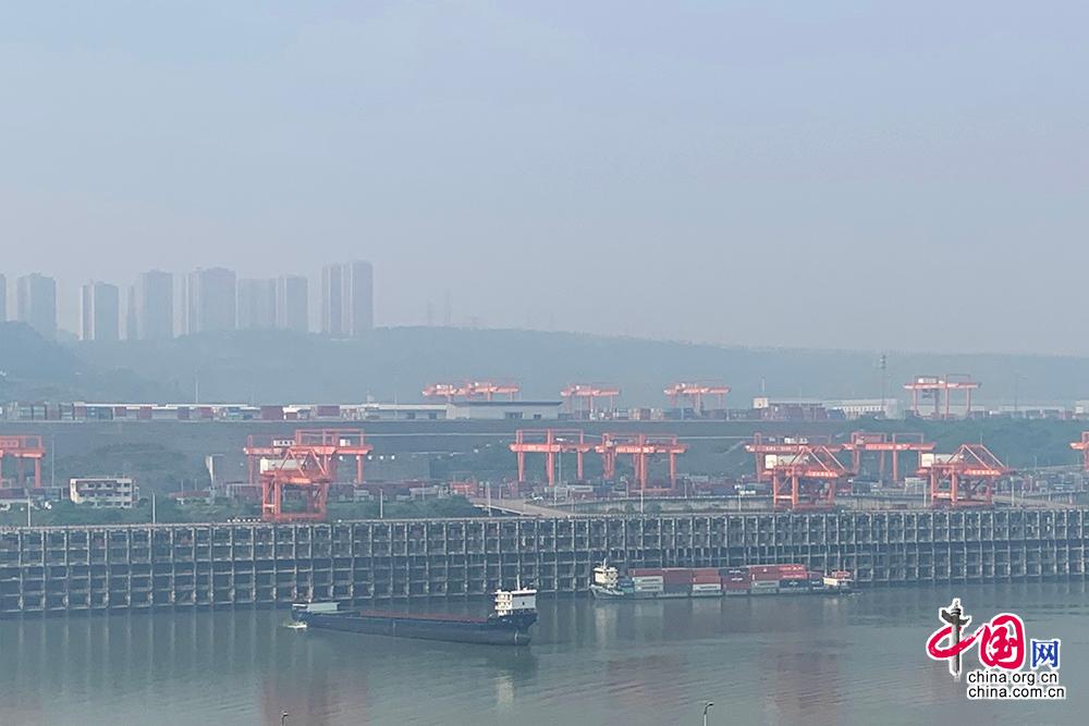 水上巡逻编队驶过重庆果园港国家物流枢纽。