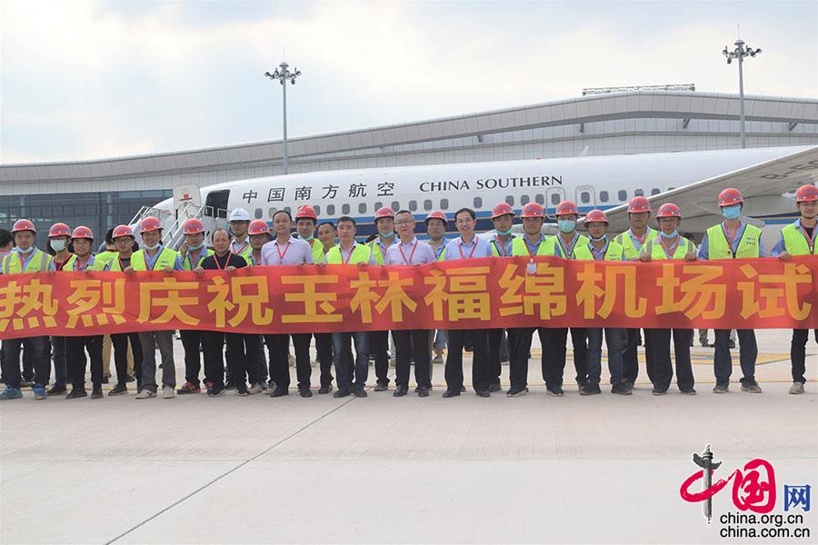 13时整,波音737飞机从玉林福绵机场跑道起飞正式开始试飞。16时26分,经过三个多小时的试飞飞行后,飞机平稳降落在玉林福绵机场跑道上。