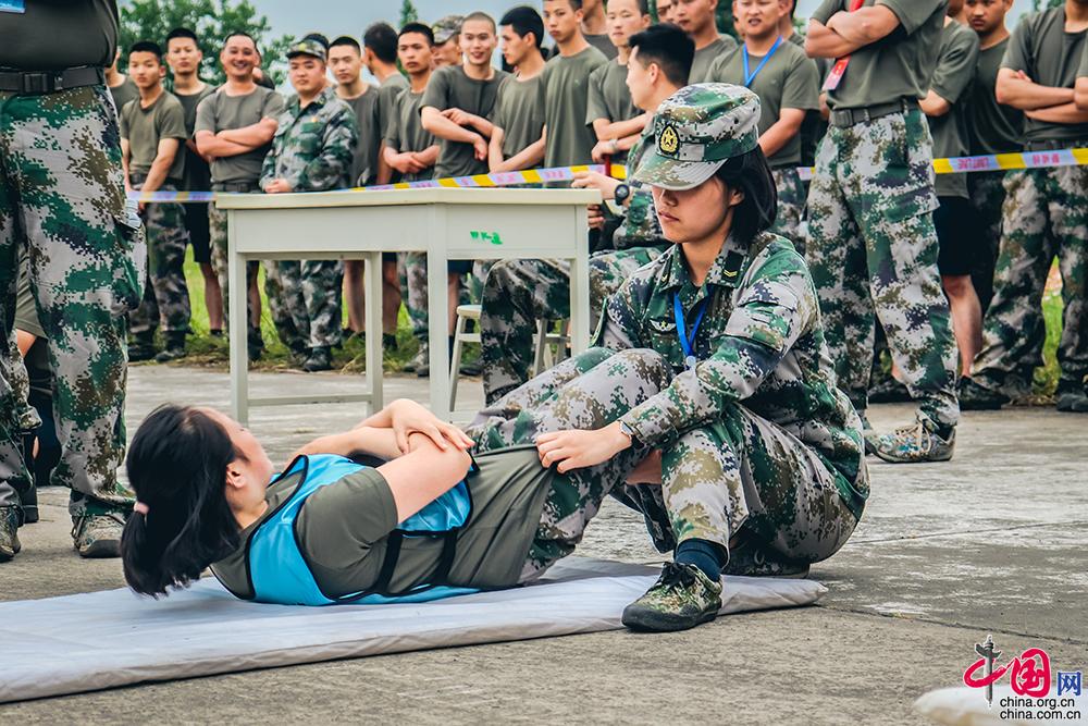 战场不分男女,女兵在仰卧起坐项目中和男兵同台竞技,取得了第二名的好成绩。乔可摄影