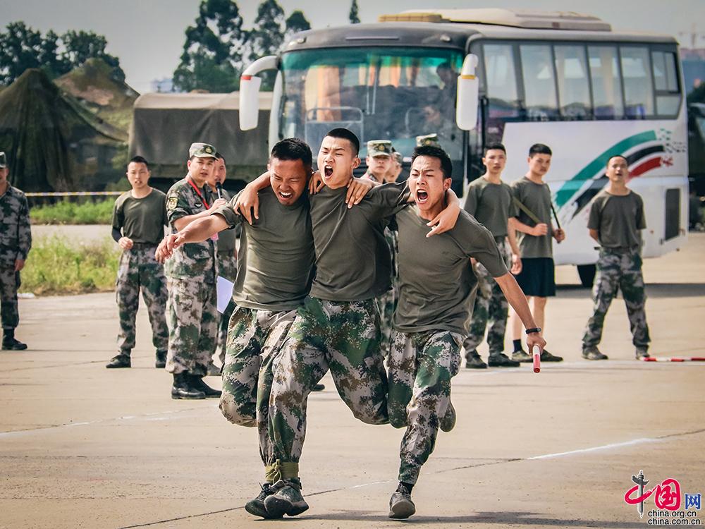 趣味项目三人四足,培养官兵默契。 乔可摄影