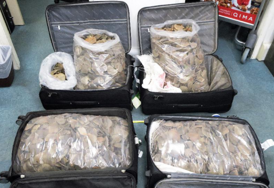 香港渔农自然护理署发言人表示,去年7月17日,一名二十岁男旅客从刚果民主共和国出发,经埃塞俄比亚抵达香港,随后,计划与一名四十六岁男旅客一同返回内地,海关人员在两人的行李中各发现约五十公斤的穿山甲鳞片。
