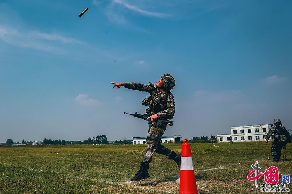 将手榴弹投掷到指定区域,考验官兵日常训练功底