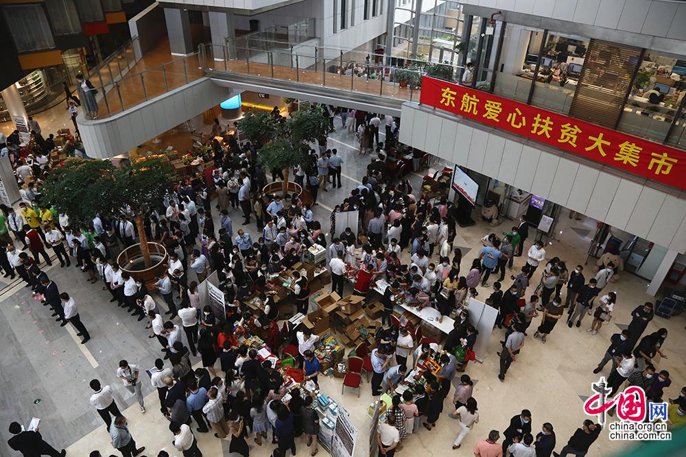 6月16日至17日,东航总部“东航之家”举办了“爱心扶贫大集市”,东航“青力扶贫”网上直播间也同步发起直播带货活动。东航供图