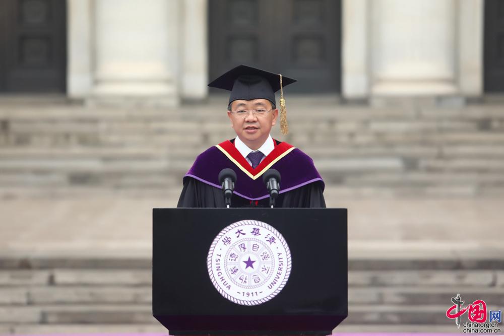 在热烈的掌声中,清华大学校长、校学位评定委员会主席邱勇走上前台,寄语毕业生“谱写新时代的命运交响曲”。