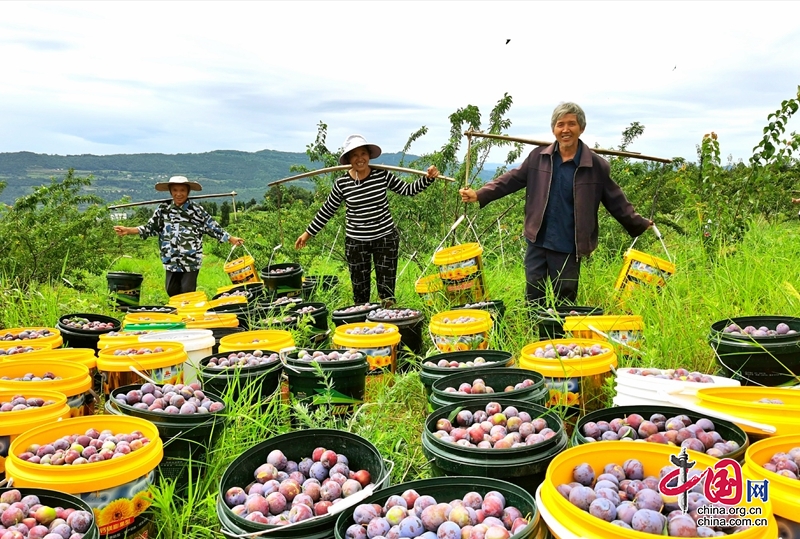 中国网讯 在四川剑阁县东宝镇长梁村连绵起伏的山坡上,一株株李子树迎风而立,裹着厚厚果霜的颗颗李子挂满枝头,老百姓穿梭在园中忙着采摘,沉浸在丰收的喜悦中。