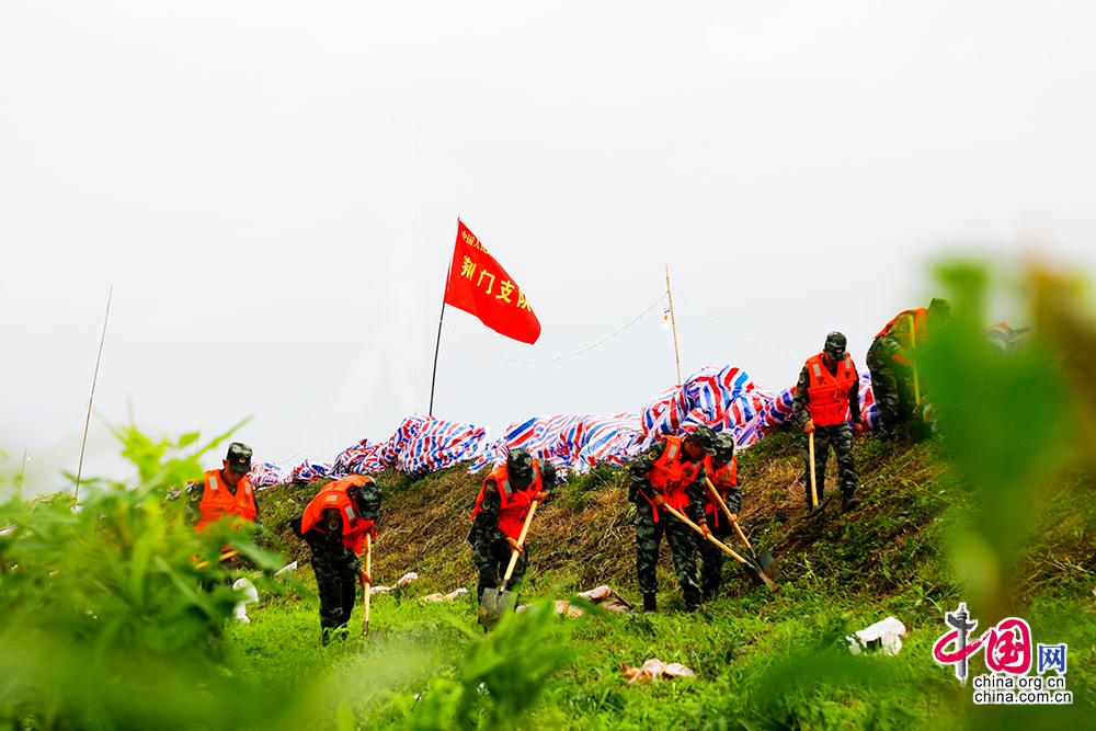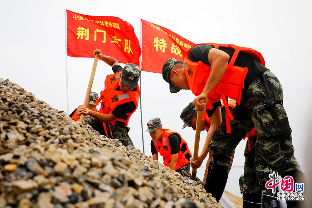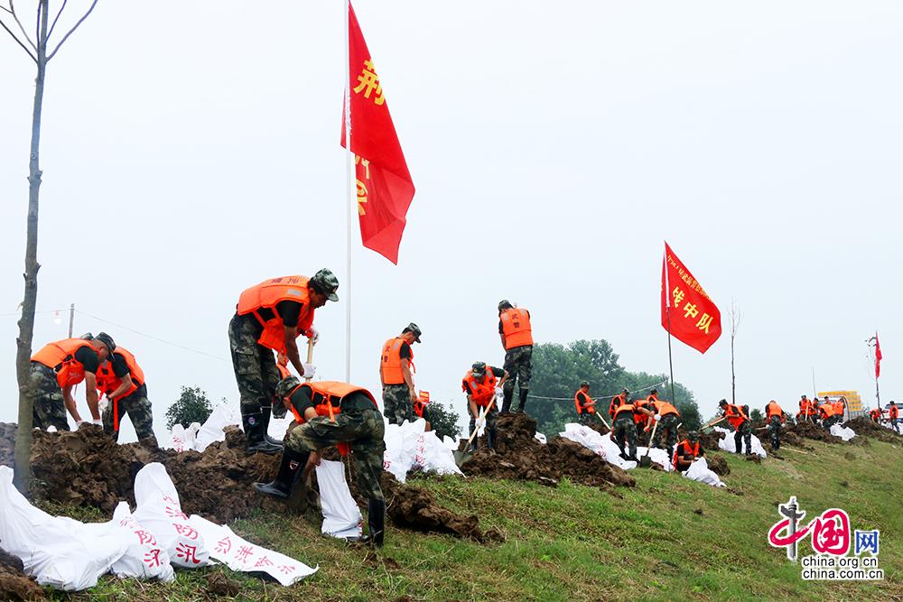 中国网讯 近日,湖北第三大湖泊长湖水位略有回落,但仍保持超保证水位状态。由于堤坝长时间被水浸泡,管涌、泡泉等险情多发频发,一旦溃堤,将直接影响沿堤背水面2000余户近万居民生命财产安全,上万亩农田受到威胁。接防汛办命令,武警湖北总队荆门支队派出80余名兵力,携带洋镐、铁锹、沙袋、救生衣等抢险器材,迅速赶至毛李镇蝴蝶咀堤段,装运沙袋、排查险情。