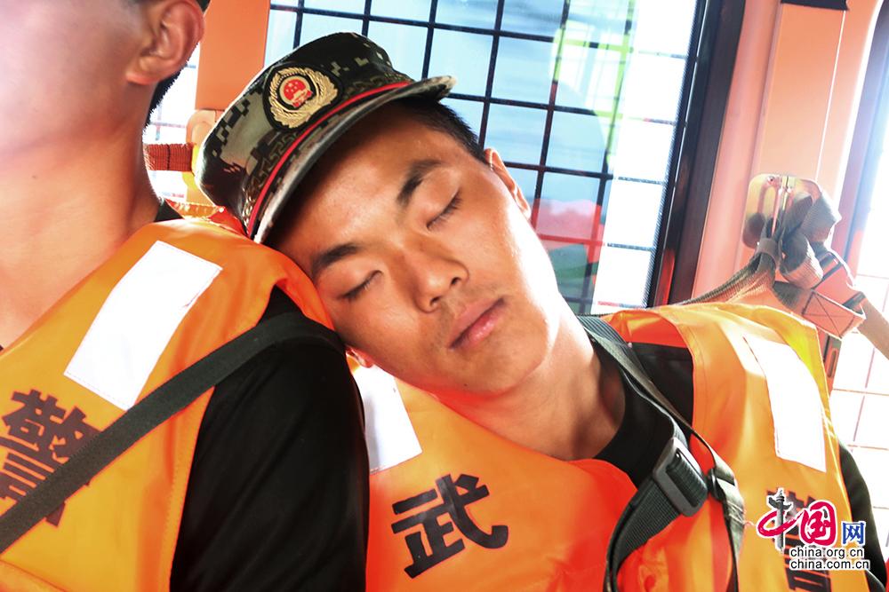 疲惫的官兵相依而睡 张瑜摄