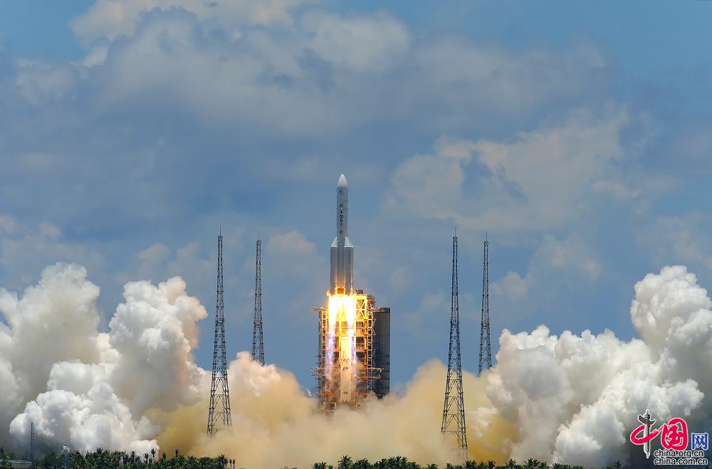 2020年7月23日12时41分,长征五号遥四运载火箭在海南文昌航天发射场发射升空,成功将我国首个火星探测器——“天问一号”送入预定轨道,发射任务取得圆满成功。 郭文彬 摄影