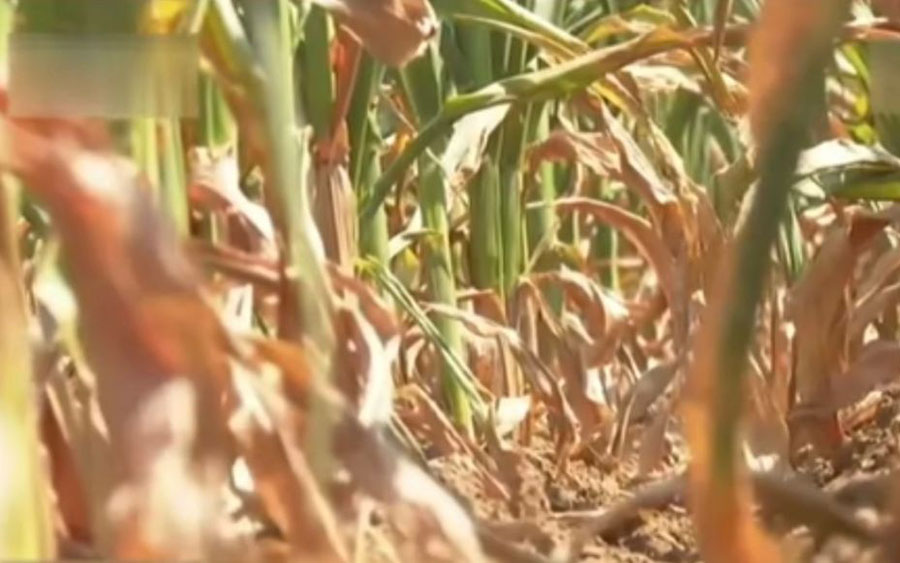 等待下雨的玉米地。视频截图