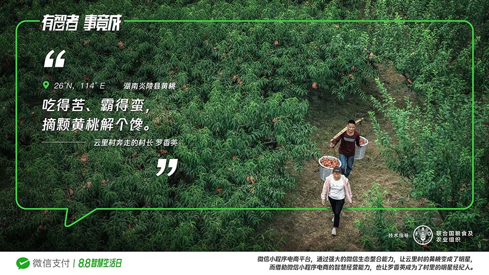 通过摄影师的镜头,这些真实影像,记录下了他们在扶贫助农工作的“奔走”画面和那些借助微信支付带动村民致富的智慧故事。