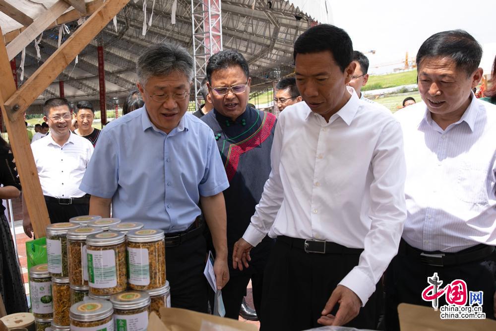 凉山州州长苏嘎尔布及中国网副总编辑薛立胜等领导在现场了解即将直播售卖大凉山优质特色农产品。中国网记者 董宁摄影