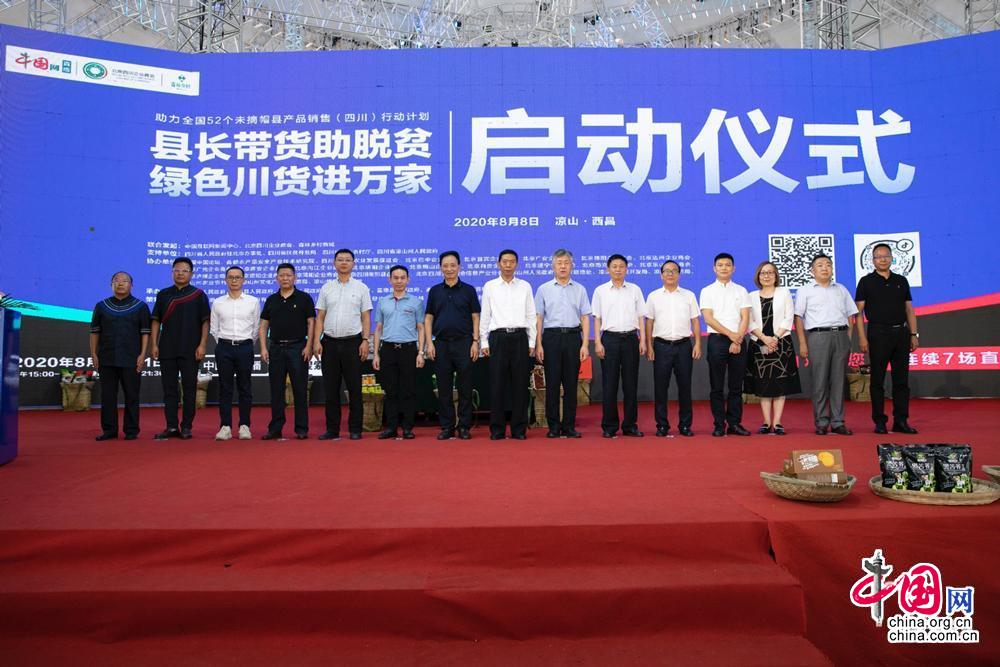 中国网讯 (记者 董宁)8月8日下午,由中国互联网新闻中心(中国网)、北京四川企业商会、森林乡村商城等单位联合发起的“县长带货助脱贫·绿色川货进万家”县长直播带货启动仪式在西昌市火把广场举行,力求多渠道解决群众农产品销售难、增收难问题,助力凉山州7个未摘帽县脱贫攻坚。在四川省人民政府驻北京办事处、四川省扶贫开发局、四川省农业农村厅、四川省凉山州人民政府的支持下,7个贫困县的县长携带本县特色农产品,齐聚西昌市,通过中国网直播线上带货推销。