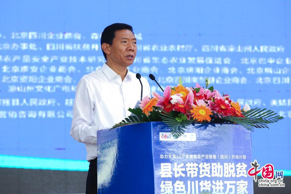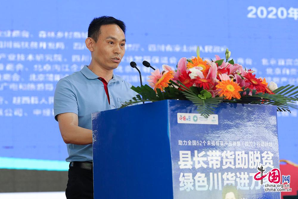 中国互联网新闻中心(中国网)副总编辑薛立胜在现场宣布“县长带货助脱贫 绿色川货进万家”直播活动启动。中国网记者 董宁摄影