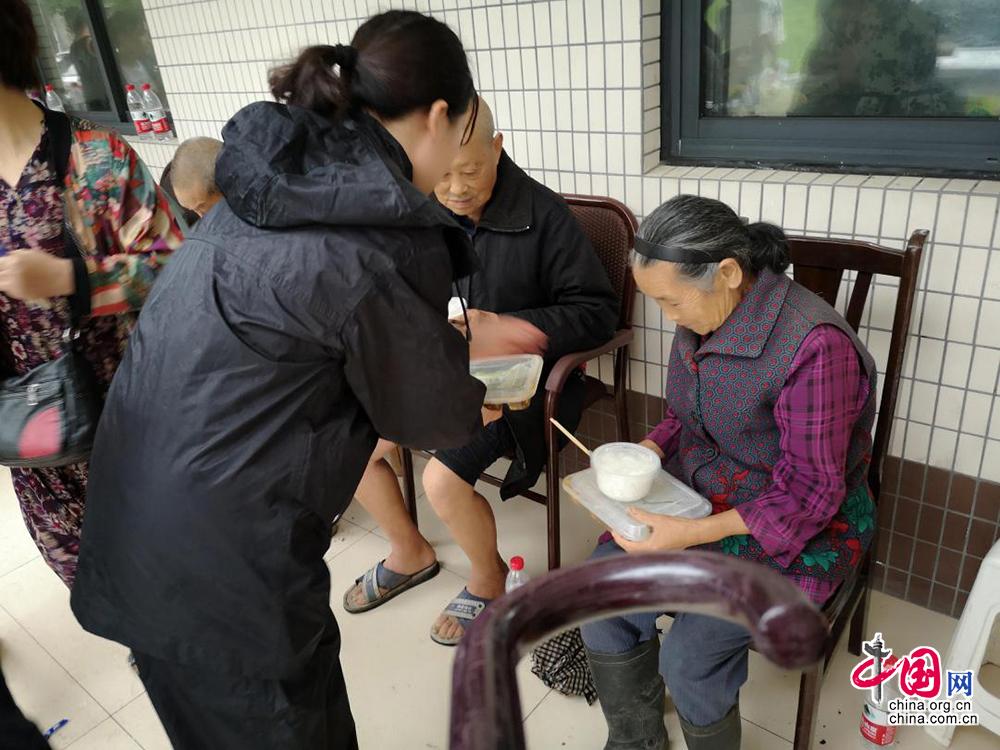 洛水镇属于什邡沿山地区,是全市受灾较严重的地区之一。8月12日上午,洛水镇纪委书记谢仪带队帮助90岁高龄的村民罗忠贵成功转移到安置点。该镇5名纪检监察干部分别加入5个防汛专班进行24小时不间断值守,开展沿山隐患排查、危险点滞留人员转移、清淤除障等工作。仅11日当天,该镇共转移危险点村民173人。