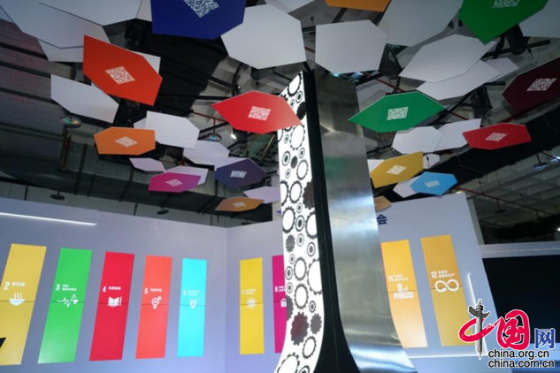 在展览现场,围绕“工程助力可持续发展”主题设计了创意性的拍照道具,供参展观众合影留念,同时还可以通过观看展览视频,收集可持续发展目标卡片,获赠专属观展纪念品。