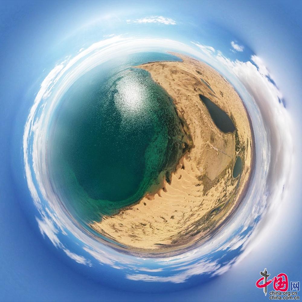 青海湖沙岛是国家重点风景名胜区青海湖组成部分之一。为了更好地保护青海湖景区的生态环境,2017年8月29日起,青海湖景区保护利用管理局关停了位于青海湖北岸的沙岛景区,停止一切旅游经营活动,对沙岛景区进行封闭整治。时隔三年,记者日前实地探访沙岛景区的保护恢复情况,大量沙漠被绿洲代替,国家一级保护动物黑颈鹤在沙岛上觅食。(无人机360航拍)中国网记者 董宁 摄影