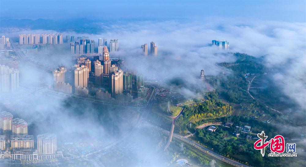 从绿水青山到“人城境业”高度融合,图为航拍成都简阳市。