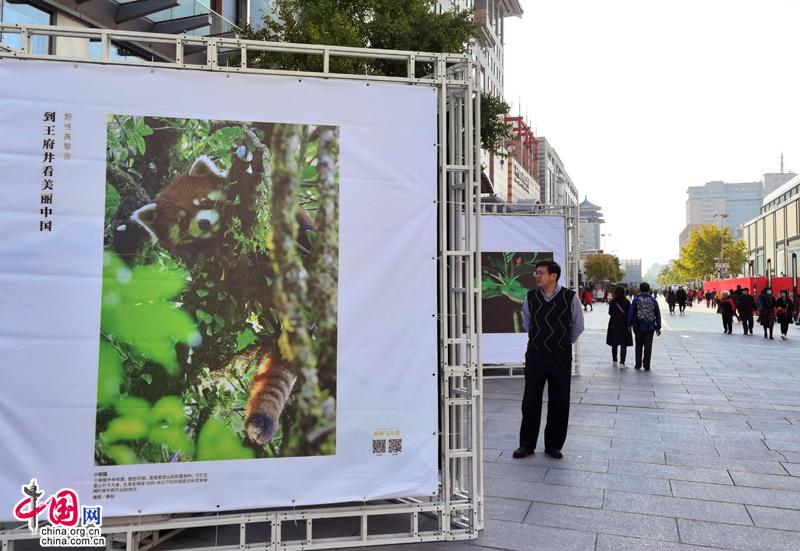 中国网讯 10月29日,“到王府井看美丽中国·野性高黎贡”摄影展在北京王府井步行街开展。26组、78幅巨幅摄影作品多角度展示了云南高黎贡山丰富的野生动植物、生物多样性、自然生态系统和优美的自然景观,呈现美丽中国的自然画卷。大山的野性美与王府井的商业气息形成鲜明对比,很容易唤起人们热爱自然、亲近自然的热情。展出将持续至11月4日。
